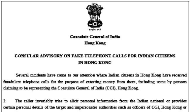 ਭਾਰਤੀ ਕੋਸਲੇਟ ਵੱਲੋਂ ਅਖੌਤੀ ਫੋਨ ਕਾਲਾਂ ਤੋ ਸਾਵਧਾਨ ਰਹਿਣ ਦੀ ਅਪੀਲ