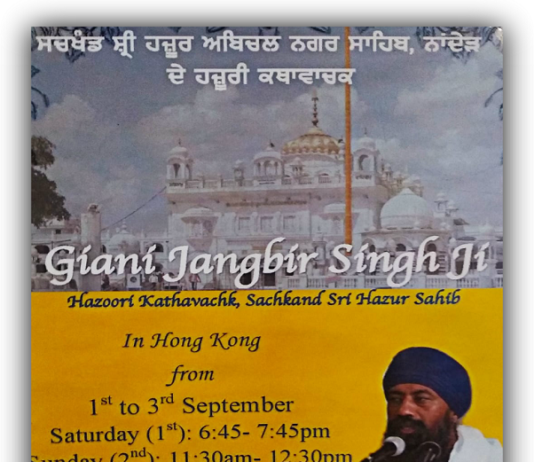 ਗਿਆਨੀ ਜਗਬੀਰ ਸਿੰਘ ਜੀ ਹਾਂਗਕਾਂਗ ਵਿੱਚ ਕਥਾ ਕਰਨਗੇ