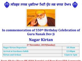 ਹਾਂਗਕਾਂਗ ਦੀਆਂ ਸੰਗਤਾਂ ਨੇ ਪ੍ਰਕਾਸ਼ ਪੁਰਬ ਸਬੰਧੀ ਸਜਾਇਆ ਨਗਰ ਕੀਰਤਨ