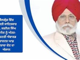 ਬੇਲਗ੍ਰੇਡ ਵਿਚ ਭਾਰਤੀ ਸਾਹਿਤਕਾਰ ਡਾ ਜਰਨੈਲ ਸਿੰਘ ਆਨੰਦ ਨੂੰ ਅੰਤਰ ਰਾਸ਼ਟਰੀ ਐਵਾਰਡ ਚਾਰਟਰ ਆਫ ਮੋਰਾਵਾ ਦੀ ਘੋਸ਼ਣਾ